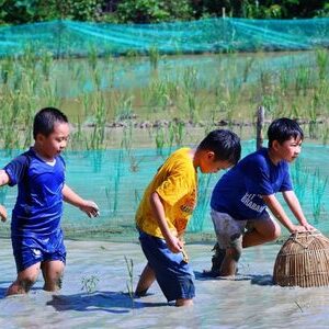 Tại đây, các em nhỏ sẽ được hướng dẫn bởi đội ngũ hoạt náo viên thân thiện, tận tình và an toàn tuyệt đối trong suốt hành trình. Từng hoạt động trong tour như trồng rau, bắt cá, làm bánh quê, tô tượng, vẽ tranh hay chơi trò chơi dân gian đều được sắp xếp hợp lý, phù hợp với thể lực và khả năng của trẻ. Mỗi bé đều trở thành “nông dân nhí” thực thụ, được tự tay trải nghiệm và khám phá thế giới quanh mình trong niềm hứng khởi và tiếng cười rộn ràng.