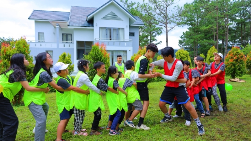 Trò chơi kết nối tập thể, chia đội, học kỹ năng giao tiếp và làm quen môi trường trại hè.