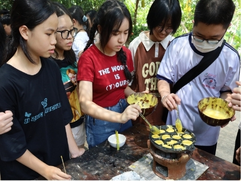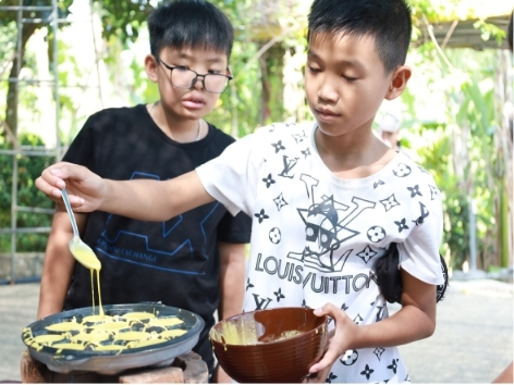 Trải nghiệm văn hóa Việt Nam: Qua các hoạt động làm bánh quê, trò chơi dân gian, các em hiểu thêm về văn hóa, phong tục truyền thống của làng quê Việt Nam.