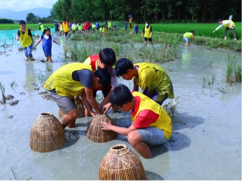 Trò chơi bắt cá dưới ao – lội bùn vui nhộn, thi bắt cá theo nhóm.